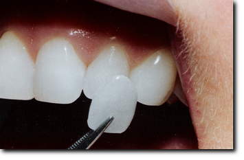 Questo trattamento consiste essenzialmente nella sostituzione della porzione visibile di smalto dentale con un restauro in ceramica che va cementato adesivamente alla superficie del dente acquista proprietà ottiche, meccaniche e biologiche assai simili a quelle dello smalto naturale.